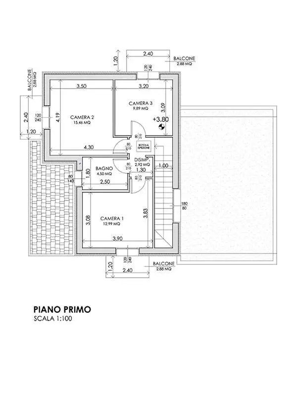 ampia ZONA LIVING al piano terra con CUCINA a VISTA e primo BAGNO di servizio, continuando al piano primo troviamo TRE comode CAMERE da LETTO, tutte con BALCONE, ed il SECONDO bagno padronale; completa la proprietà l’AUTORIMEESA al piano terreno per il ricovero di 2 auto affiancate, con retrostante LOCALE TECNICO e LAVANDERIA.