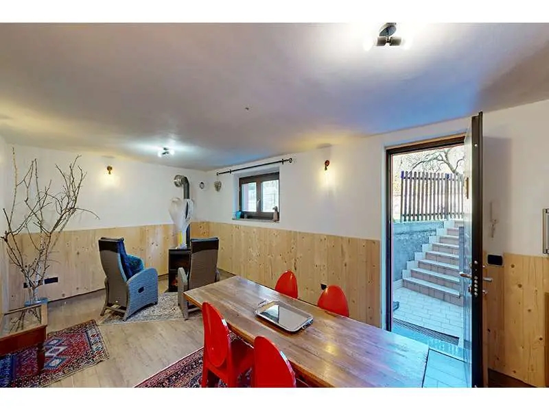al piano seminterrato, una suggestiva TAVERNA, perfetta per momenti conviviali o per creare uno spazio dedicato alle proprie passioni, oltre alla centrale termica;