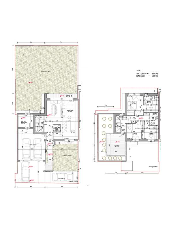 Composizione : VILLA su due livelli, terra e primo, composta al piano terreno da ampia ZONA LIVING openspace con uscita diretta su entrambi i GIARDINI, e BAGNO di servizio, proseguendo al piano primo si trovano 3 comode CAMERE da LETTO, e 2 BAGNI, di cui uno pertinenziale alla camera matrimoniale, dotata di CABINA ARMADIO e TERRAZZO; completano la proprietà l’AUTORIMESSA la piano terra per il ricovero di 2 macchine affiancate, un ampio LOCALE TECNICO e la possibilità di parcheggio davanti alla propria basculante.