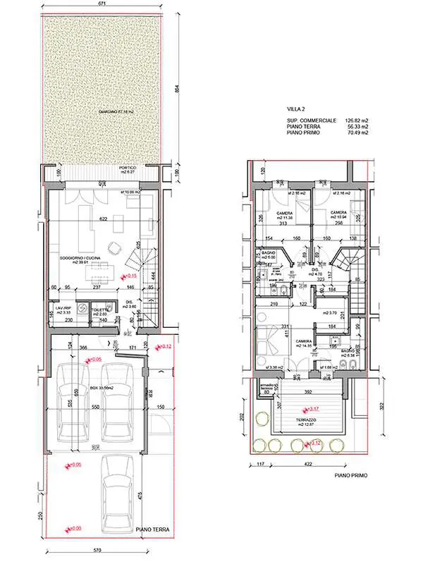 Composizione : VILLA su due livelli, terra e primo, composta al piano terreno da ampia ZONA LIVING openspace con uscita diretta sul GIARDINO retrostante, BAGNO di servizio e LAVANDERIA, proseguendo al piano primo si trovano 3 comode CAMERE da LETTO, e 2 BAGNI, di cui uno pertinenziale alla camera matrimoniale, dotata di CABINA ARMADIO e TERRAZZO; completano la proprietà l’AUTORIMESSA la piano terra per il ricovero di 2 macchine affiancate e la possibilità di parcheggio davanti alla propria basculante.
